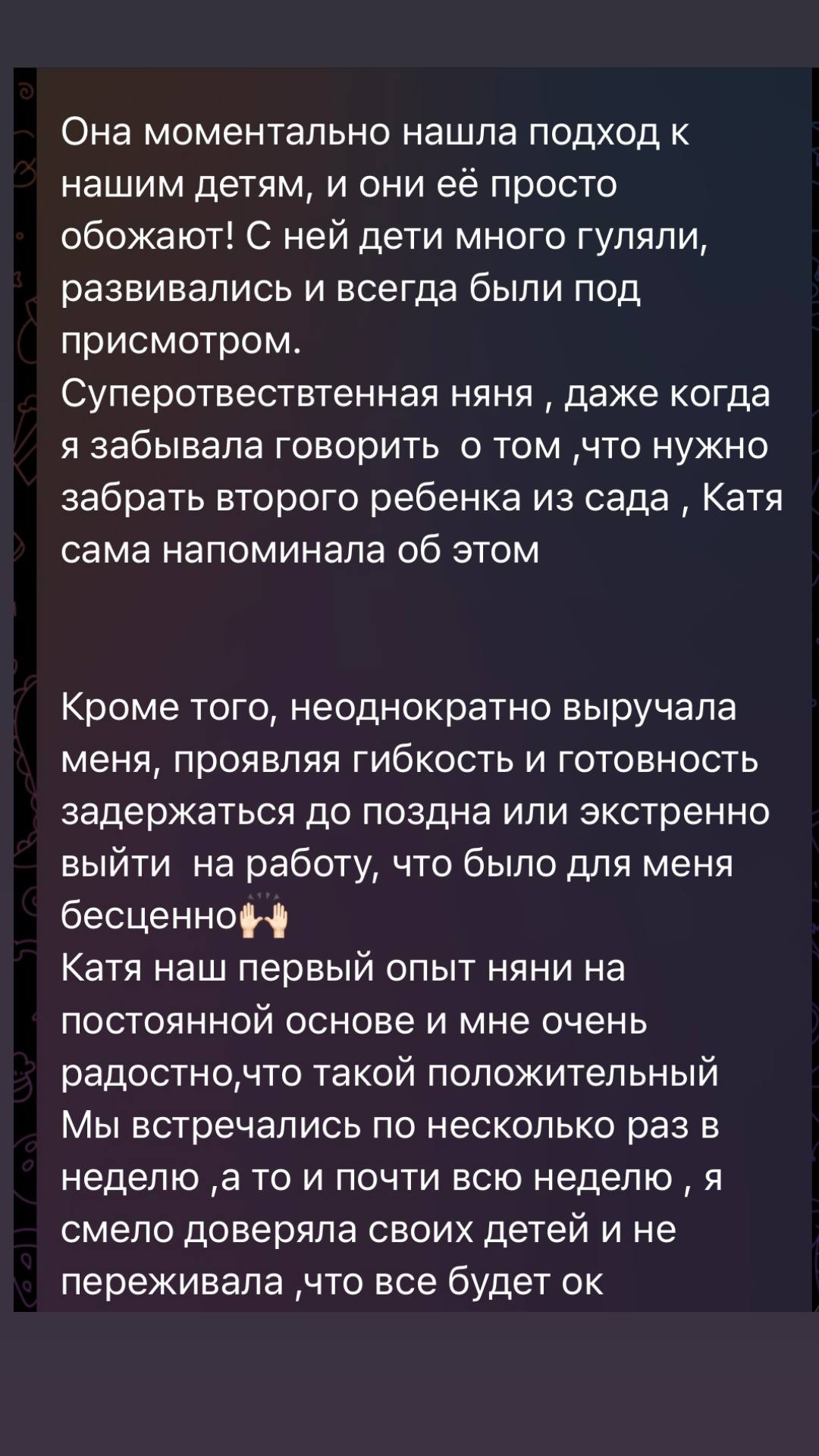 Если вам нужна помощь в присмотре за детьми, подберите воспитателей на онлайн-сервисе 7hands. Мы собираем лучшие анкеты няни для ребенка с ценами и графиком работы, проверяем профили соискателей, чтобы вы были спокойны насчет безопасности семьи.