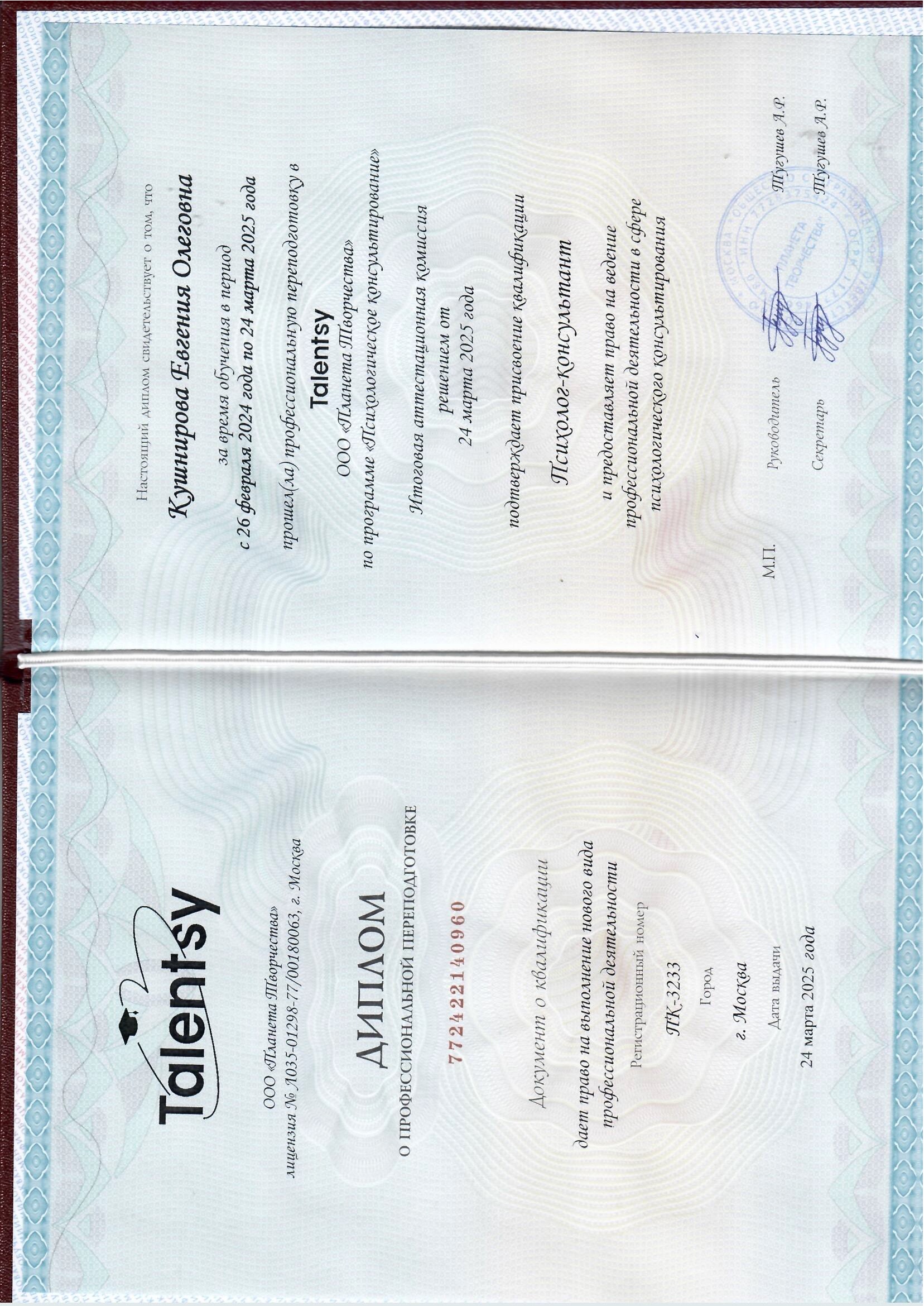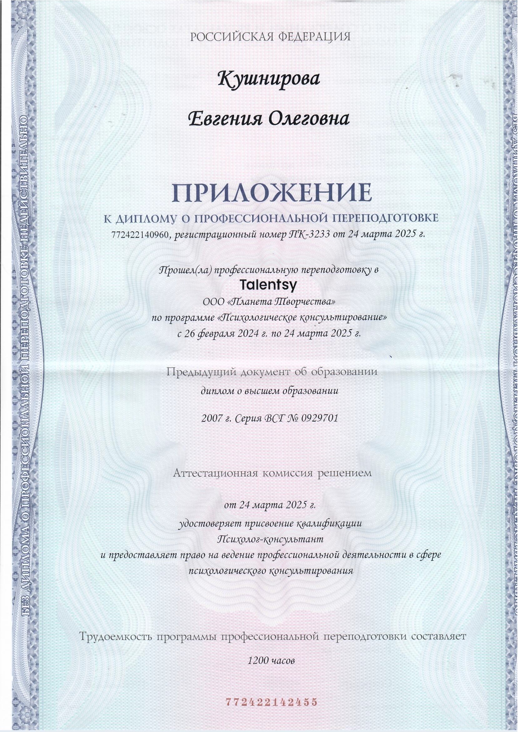 Меня зовут Евгения Кушнирова - интегративный психолог, гештальт-терапевт В своей работе я часто слышу похожие запросы: «Вроде у меня всё есть и всего достаточно, но мне тошно, я ничего не чувствую»; «Хочу начать ту жизнь, о которой мечтаю, где буду зарабатывать, занимаясь любимым делом, а не вот это вот всё… уже много лет хочу»; «У меня особо нет проблем, просто мы уже давно общаемся только через претензии с супругом / ребенком / родителями»; «Мне просто плохо и я не понимаю, почему» - и несмотря на то, что для многих они откликаются - за каждым запросом стоит индивидуальная история и уникальный опыт каждого человека. Моя задача - исследовать этот опыт, который привел клиента ко мне, обнаружить как это сказывается на качестве настоящей жизни (вывести в осознанность, всё что таится в подсознании в виде установок, убеждений и автоматических паттернов) и помочь клиенту найти свой, подходящий именно ему путь преодоления жизненных препятствий. На консультациях не будет быстрых ответов и поверхностных рекомендаций: «делай так, а так не делай и будет тебе счастье», но будет много внутренней работы, где, вероятно, придется столкнуться со своей болью, уязвимостью и теневыми сторонами, но оно того стоит, ведь в результате вы не просто познакомитесь с самим собой, но и вернете себе авторство своей жизни) А ещё в нашей работе будет много поддержки, принятия и безопасности быть собой Длительность 60 минут Стоимость 3500₽ Также, я очень люблю работать с МАК картами и с радостью проведу консультацию с их помощью Длительность 40 минут Стоимость 1500₽ подробнее