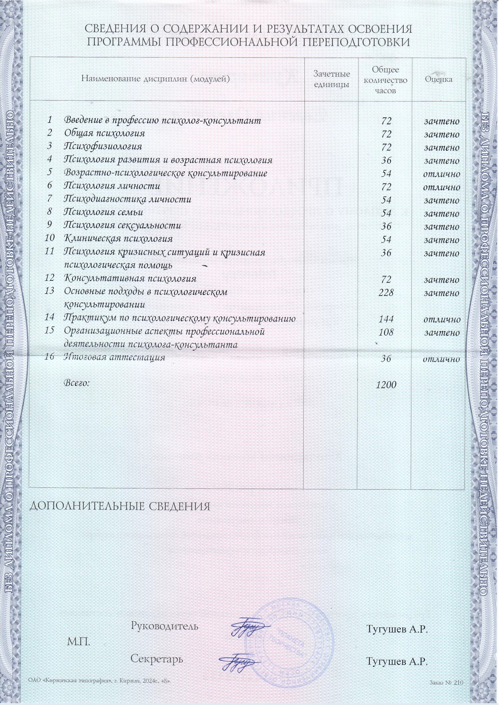 • Дополнительное