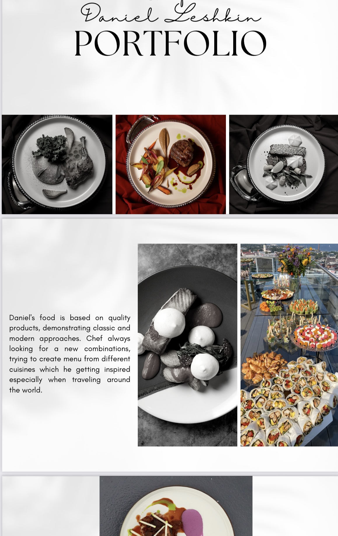 Я недавно перебрался в Москву с Европы и сейчас полностью открыт к новым заказам, предложениям в качестве Private Chef в Москве и за её пределами Я готовил по всему миру включая Антарктиду Часто выезжаю на резиденции, виллы , яхты и прочие места Летом например готовил для королевской семьи Абу Даби в Париже +79255106218 www.danielleshkin.com/ru Благодарю подробнее